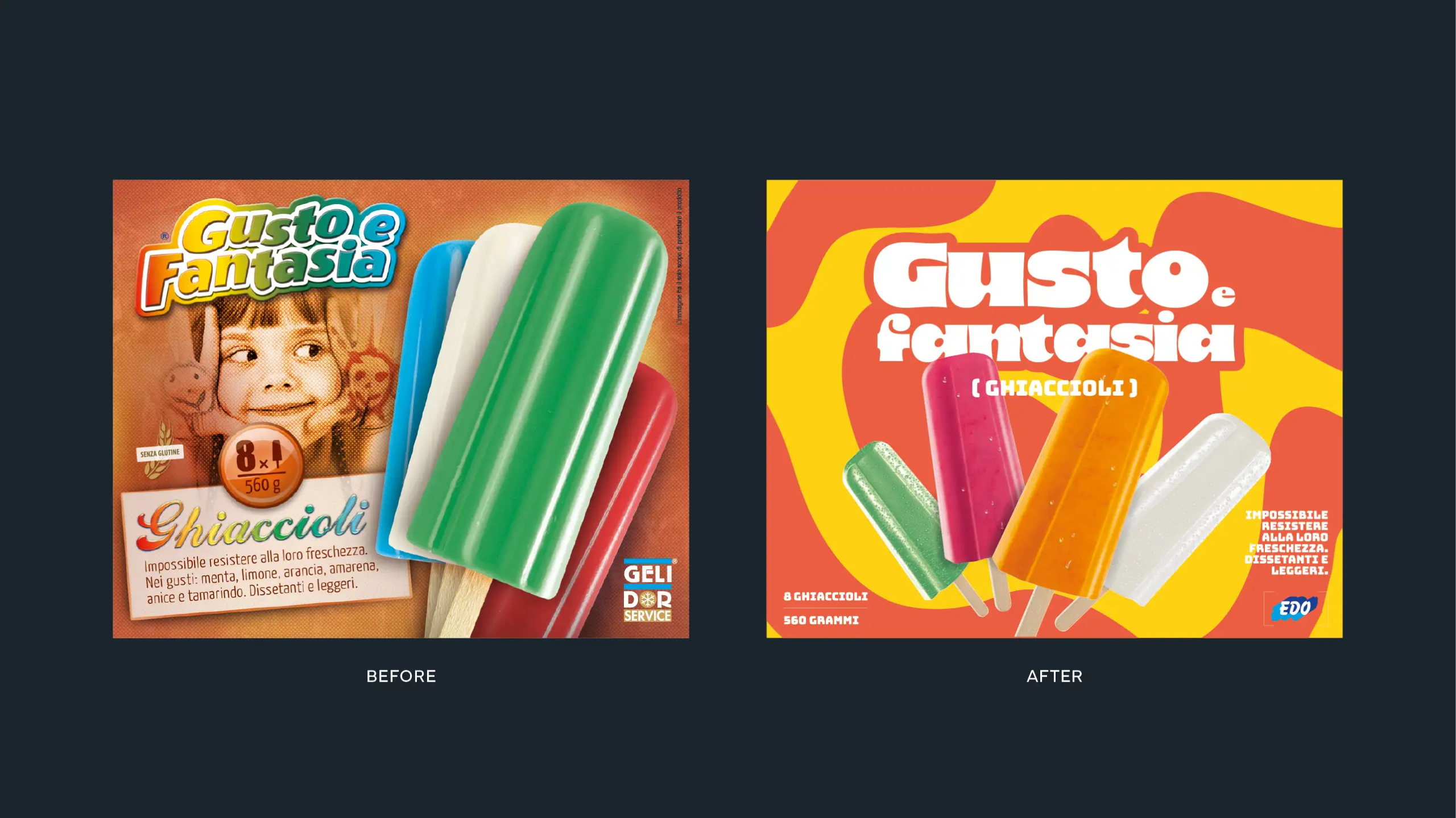 Ideare una comunicazione coerente con l’articolata identità aziendale. EDO Gelati rappresenta, infatti, un unicum nel settore del food: l’azienda è attiva nel private label per la produzione di gelati, ma ha anche linee di prodotti a proprio marchio che distribuisce a domicilio attraverso mezzi refrigerati. Un modello di business complesso.